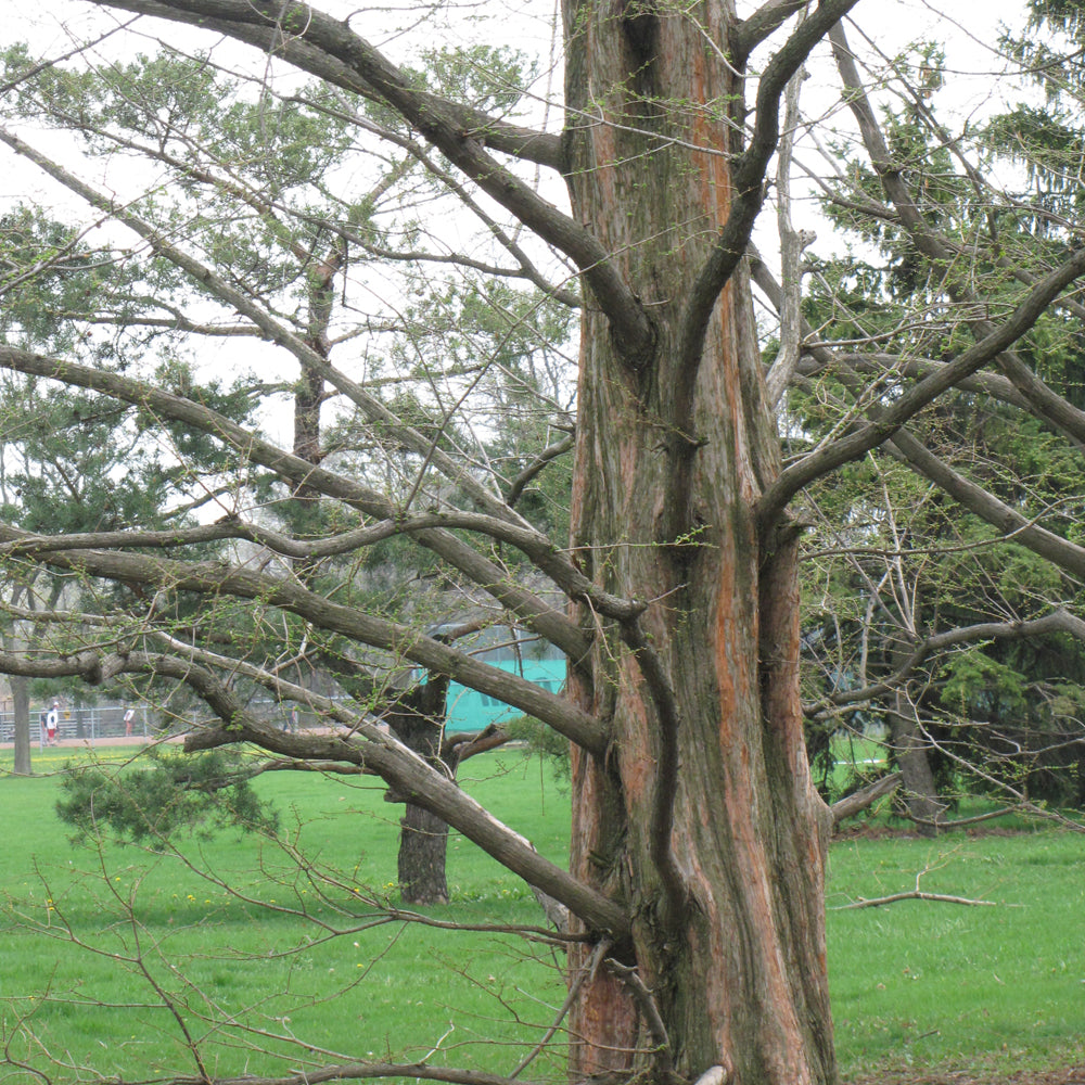 Description: An ancient and interesting deciduous conifer with a very delicate, ferny appearance, and a very tall, pyramidal habit of growth; shaggy, reddish bark is rather appealing, beautiful apricot brown fall color; the hardiest of the redwood/sequoia family